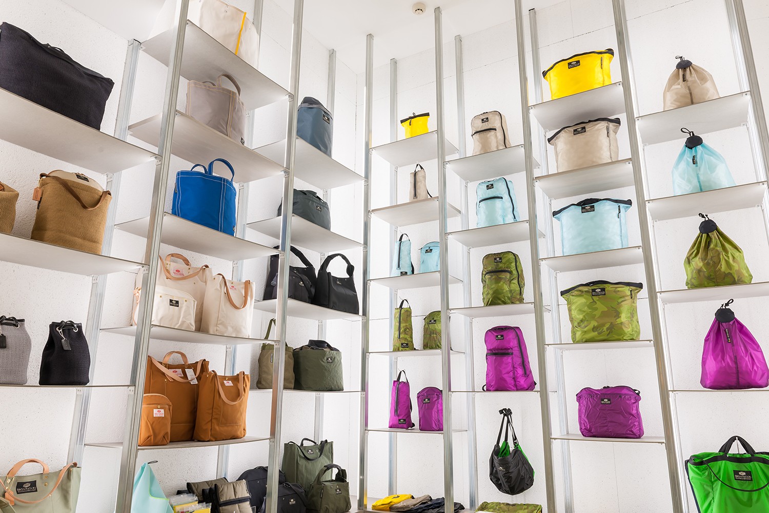洋服がそうであるのと同様に、合理性や利便性だけでなく、"分量や持った時の位置・色"など、"それ以外の魅力"を優先させた少し不都合なぐらいの遊び心のあるデザイン性とビビッドなカラーが魅力です。"日本製"の素材を使用し、縫製は地元大阪で行うというこだわりと、それに対しての"適正な値段"のバランスのとれた製品です。実用性に縛られない、服屋の自由な発想が新たな形を提案します。 今では日本国内だけでなくヨーロッパ・アメリカ・アジアでも多数取り扱いがあり、海外でも支持を受けています。